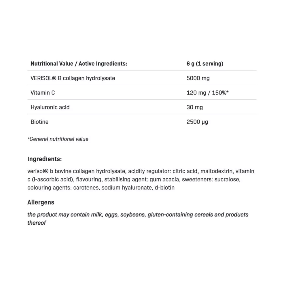 COLLAROSE contains the patented collagen hydrolysate – Verisol® – manufactured by the German pharmaceutical company GELITA, which works from within to stimulate collagen production.