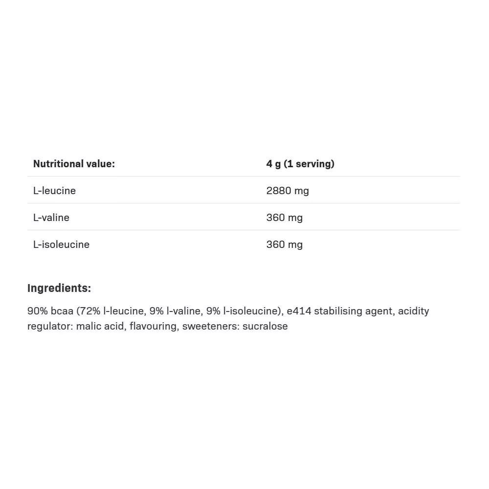 ALLNUTRITION BCAA 8:1:1 STRONG FORMULA is a branched-chain amino acid complex in an 8:1:1 ratio (L-leucine: L-valine: L-isoleucine), designed to support the body during and after exercise. The massive dose of the amino acid L-leucine promises maximum training results.