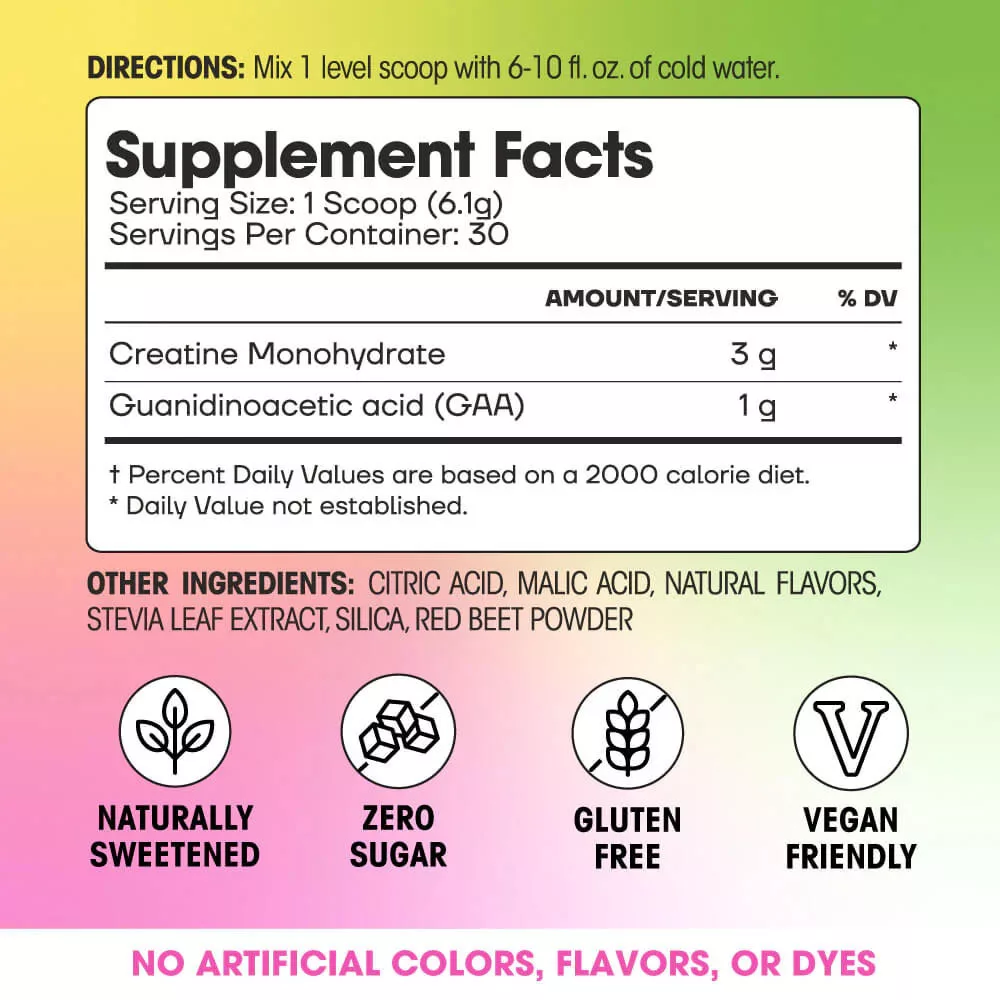• CLINICALLY TESTED complex of creatine monohydrate and GAA provides more benefits.