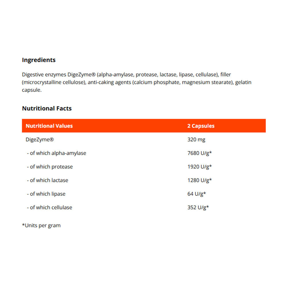 • contains alpha-amylase, lipase, protease, lactase and cellulase