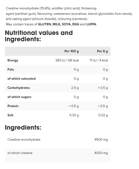 Creatine monohydrate with taste, with 4500 mg creatine monohydrate per serving.