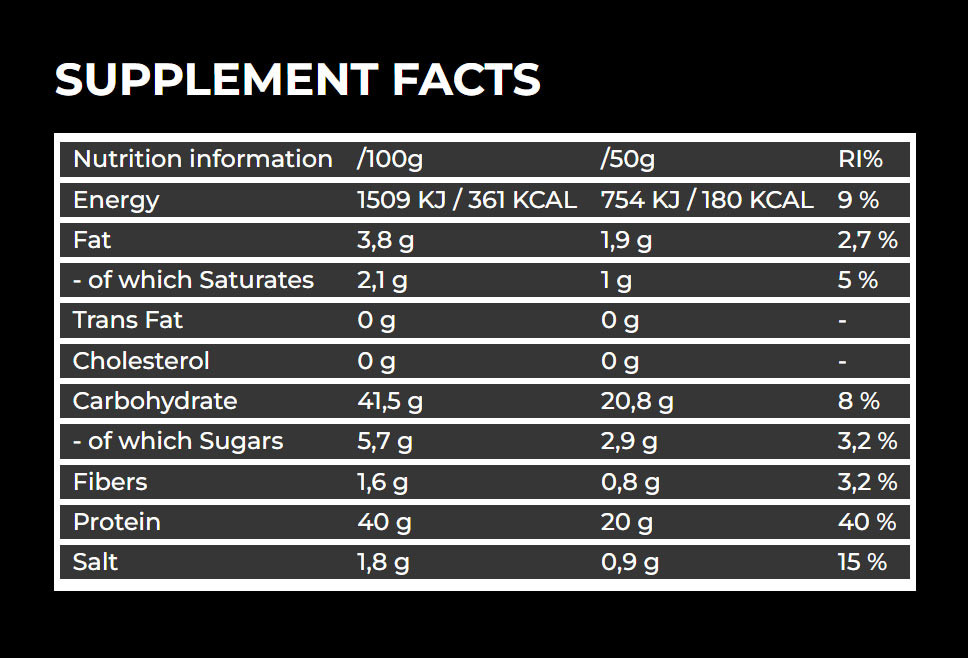• high protein content (40g)