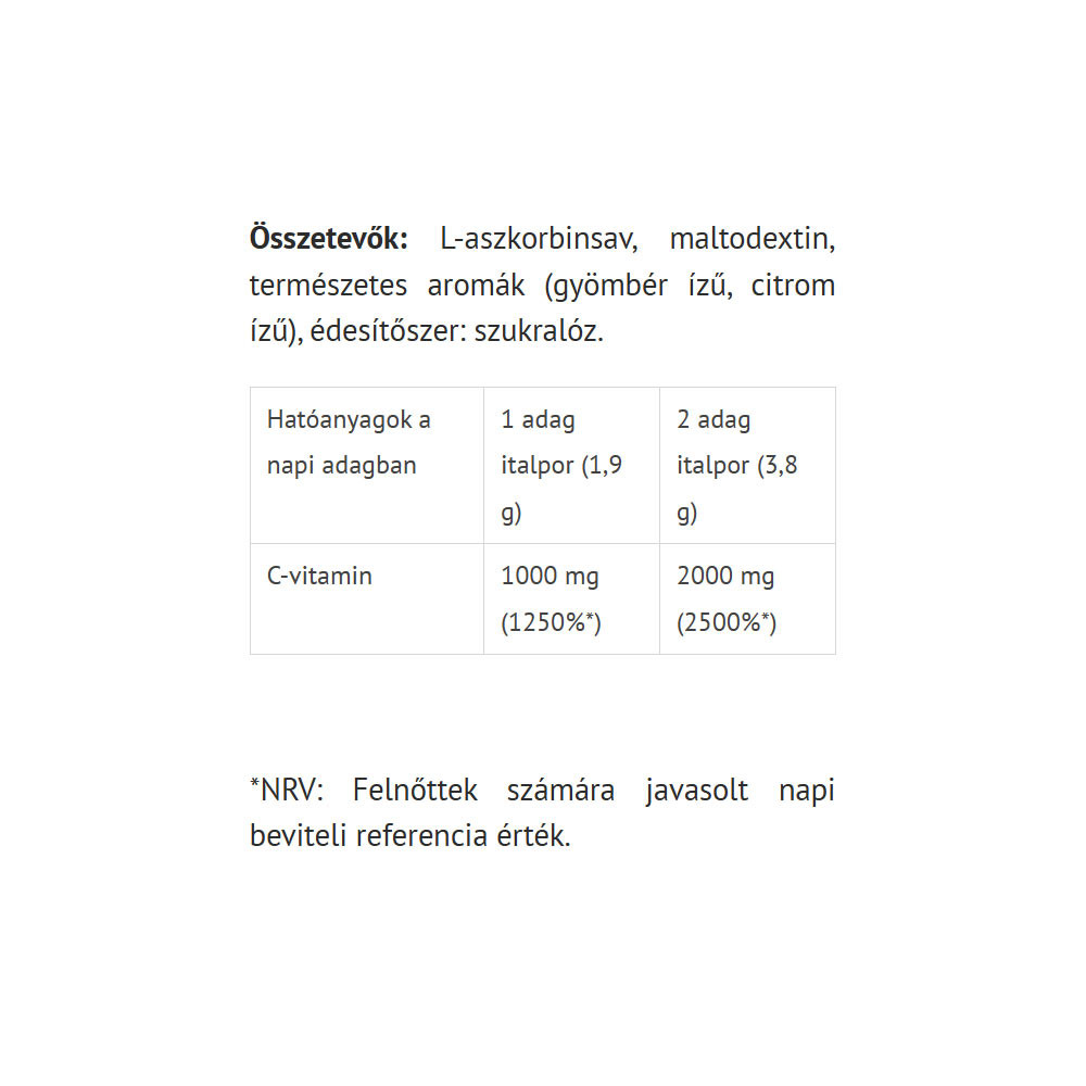 GINGER - LEMON FLAVORED, INSTANTLY SOLUBLE VITAMIN C POWDER, TO REDUCE FATIGUE AND SUPPORT IMMUNE HEALTH, FOR THE WHOLE FAMILY.