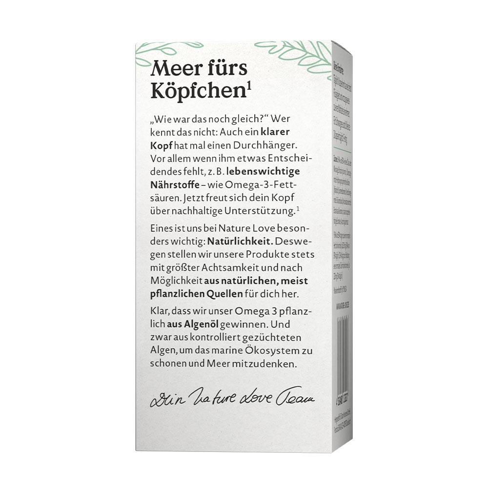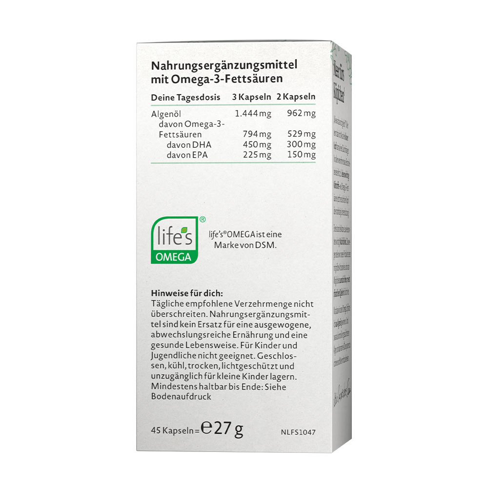 Non GMO"How was that again?" Who doesn’t know the feeling: even a clear mind can sometimes have a lapse. Especially when it’s missing something essential, such as vital nutrients – like omega-3 fatty acids. That’s when your mind welcomes sustainable support. We obtain our omega-3 from plants, specifically from algae oil. And from carefully cultivated algae, in order to protect the marine ecosystem and keep the ocean in mind.