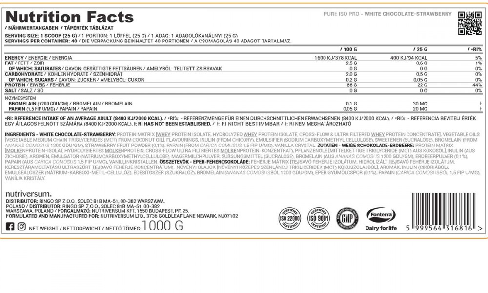 Nutriversum ISO PRO - PURE (1000 g, Strawberry White Chocolate)