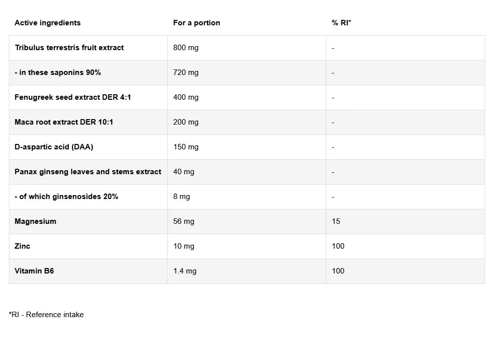 Properties of the ingredients contained in OstroVit Testo Booster: