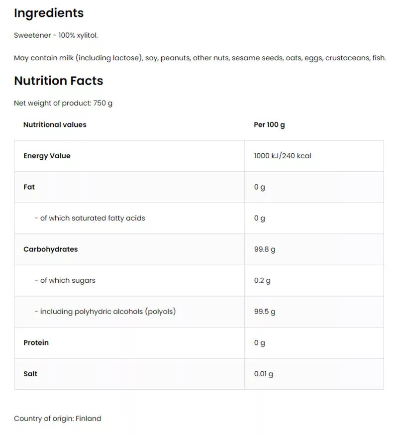 Xylitol should be introduced gradually. It is recommended to consume up to 15 g per day (3 teaspoons of sugar).