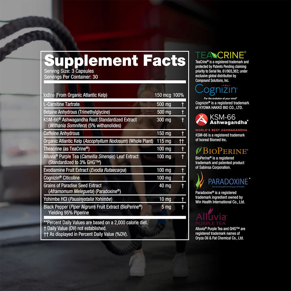 Do not use if the safety seal is damaged or missing. This product is only intended for healthy adults 18 years of age or older. Do not use this product if you are pregnant or nursing. Before using this product, consult a licensed, qualified healthcare professional if you are taking including but not limited to antidepressants such as MAOI (Monoamine Oxidase Inhibitor) or SSRI (Selective Serotonin Reuptake Inhibitor), blood thinners, nonsteroidal anti-inflammatory drugs, pseudoephedrine, any other dietary supplement, prescription drug, over-the-counter medication or if you suspect you have or have been treated for, diagnosed with or have a family history of, any medical condition, including but not limited to high or low blood pressure, diabetes, glaucoma, anxiety, cardiovascular, psychiatric or seizure disorders, cardiac arrhythmia, stroke, heart, liver, kidney or thyroid disease, or difficulty urinating due to prostate enlargement. This product contains caffeine and should not be used by individuals wishing to eliminate caffeine from their diet, nor should it be used in combination with caffeine or stimulants from other sources, including but not limited to coffee, tea, soda, or other dietary supplements and medications. Do not use in conjunction with alcohol. Discontinue 2 weeks before surgery. Immediately discontinue use and contact a medical doctor if you experience any adverse reaction to this product. Do not exceed recommended daily intake. Store in a cool, dry place, tightly closed and under 76 Degrees Fahrenheit. Do not expose to excessive heat or moisture. Keep out of the reach of children and pets.
