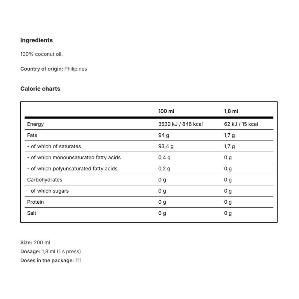 Coconut oil spray in a practical format, ideal for cooking, baking, or flavoring salads with natural coconut taste