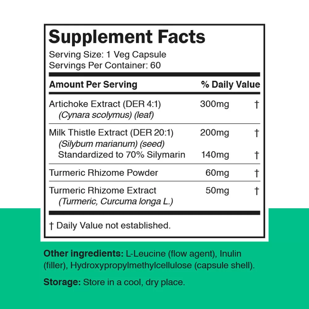- Premium plant-based liver support formula with milk thistle, artichoke and turmeric extracts